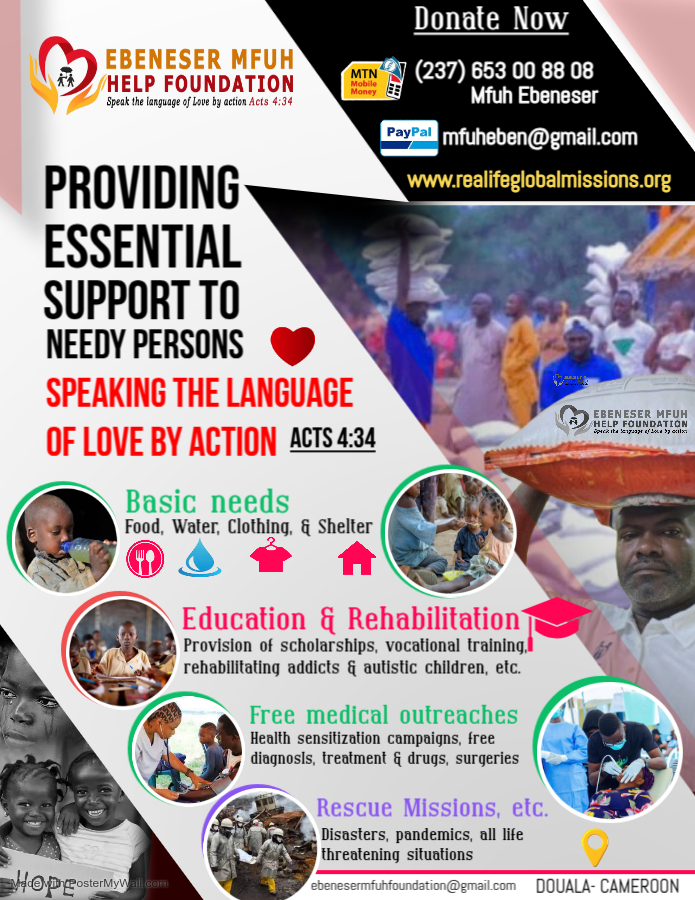 The EBENESER MFUH HELP FOUNDATION is focused on meeting essential needs like food, water, clothing, and shelter. We offer education, rehabilitation, free medical outreaches, and rescue operations to assist those in distress. Our aim is to empower communities, encourage development, and inspire meaningful change. We believe that working together can create a significant and enduring impact for generations to come.